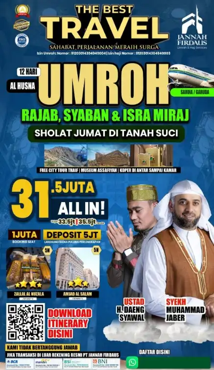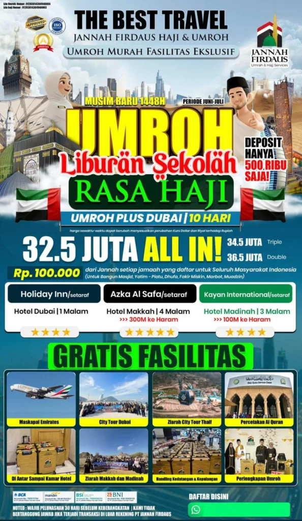 - Khusus Umroh Itikaf & Full Ramadhan, Pelunasan 60 Hari Sebelum Keberangkatan